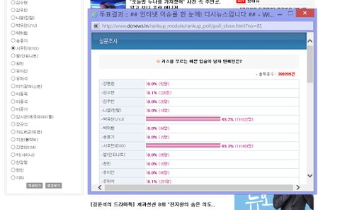 키스를 부르는 입술 투표..아까 50% 이상이였는데.... 거의 다 따라 잡혔어.....