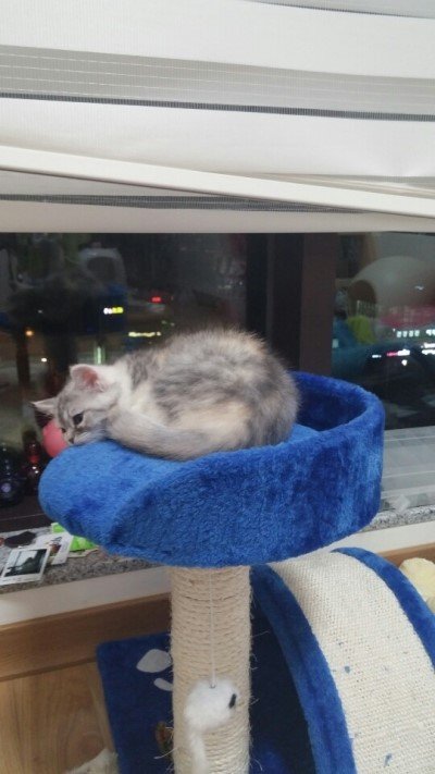 캣타워에 반도 안차는 갸냘픈몸에 여기저기 자주 아파서