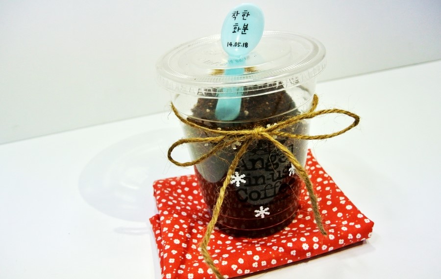 재료 : 콜드컵, 아이스크림 숟가락, 커피찌꺼기, 배양토, 씨앗