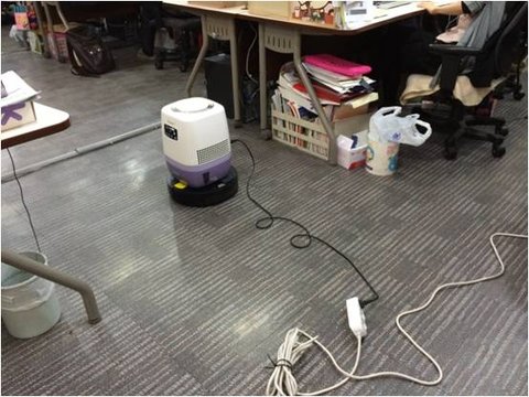 바닥 청소 한다고 로봇청소기로 돌려 놨는데 과장님이 먼지 난다고