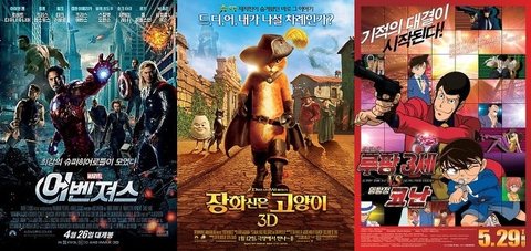 '어벤져스', '장화신은 고양이', '극장판 루팡 3세 vs 명탐정 코난'