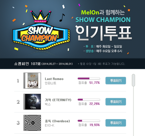 5. 엠카운트다운 (이글쓴이가 친히 엠카는 금-월만 투표한다고 해주심^^)http://mcountdown.interest.me/vote/join.asp