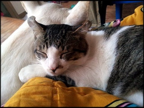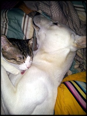 사랑이가 자면서도 희망이 그루밍 해주는 모습이랍니다.ㅎㅎ