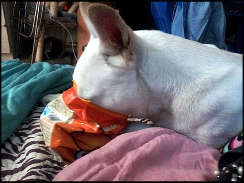 희망이 다먹은 과자봉지를 발견했네요 ..
