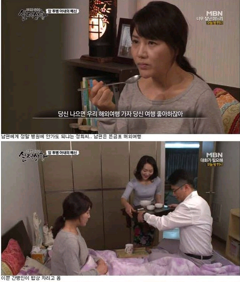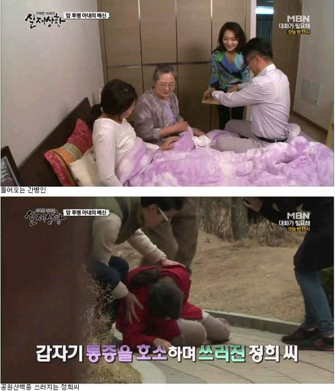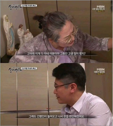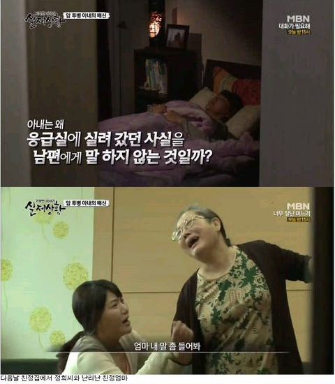 장모님에게 집에서 잘 쉬기만 하면 된다고 설명하는 남편