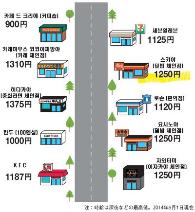 일본은 알바만으로도 먹고 살 수 있을 만큼 알바비 잘쳐줍니다. 프리터라고 해서, 일정한 직업 없이 아르바이트로만 먹고 사는 젊은층이 늘어나고 있는 추세입니다. 밥만 사는 게 아니라 집세도 내고 문화생활도 합니다. 물론 부유하게 살 만큼은 아닌데, 집값 싼 데서 집세 내고 살 만큼은 됩니다. 버는 만큼 세금 많이 냅니다. 확실히 한국보다 많이 내기는 하는데, 버는 돈은 한국보다 많으니까 결국 총량은 비슷한 것 같습니다. 근데 다른 건 몰라도 과자값은 양과 가격비교할 때 한국이 더 비싼 느낌