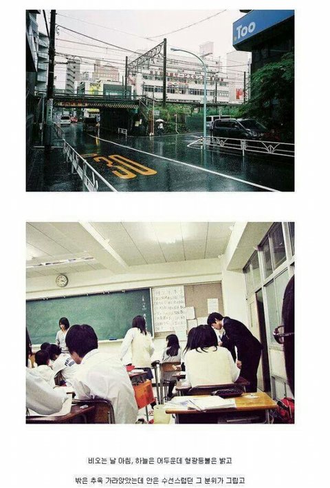 비오는 날 아침, 하늘은 어두운데 형광등불은 밝고 밖은 추욱 가라앉았는데 안은 수선스럽던 분위기 5교시, 모든 목소리가 나른해진 교실 속 돌아가던 선풍기 소리... 글 읽으니까 그 떄 상황 속으로 들어간것 같은 느낌이다.