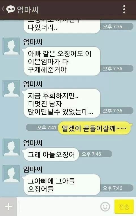 ㅋㅋㅋㅋㅋㅋㅋㅋㅋㅋ아 집분위기 웃기고 너무 좋당ㅠㅠ 그오징어에 아들오징어ㅋㅋㅋㅋㅋㅋ어머니 완전 귀여우심 ㅋㅋㅋ