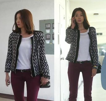 빨-간 스키니팬츠에 세련미 넘치는 이로 티셔츠랑 자켓입고 서있는데