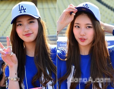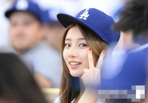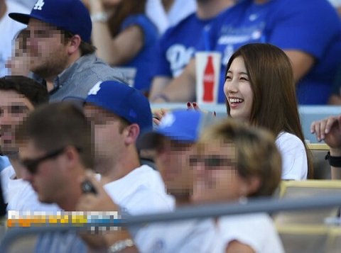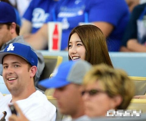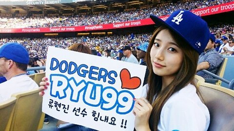 LA 다저스와 신시내티 레즈의 경기가 열리는 다저 스타디움에 가수 겸 연기자인 수지가