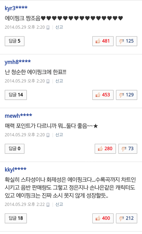 요즘은 에이핑크가 대세인가봐