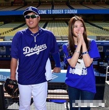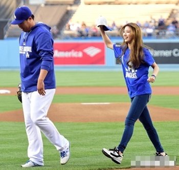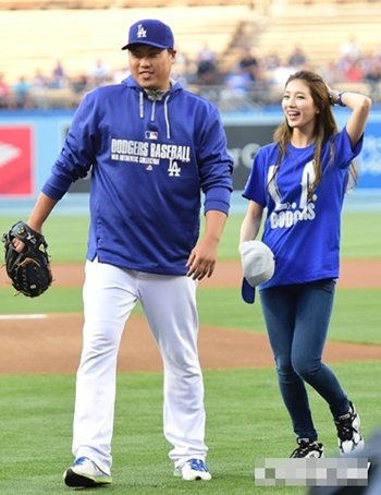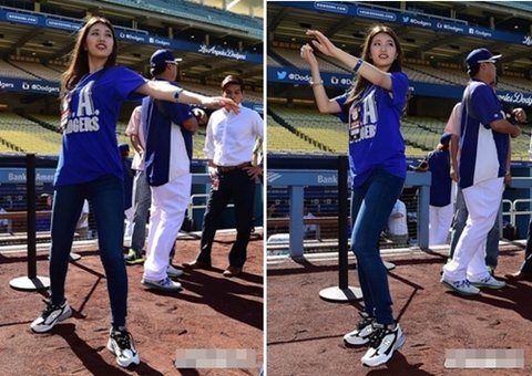 류현진 소속인 LA다저스 경기 시구하러 미국까지 간 수지!