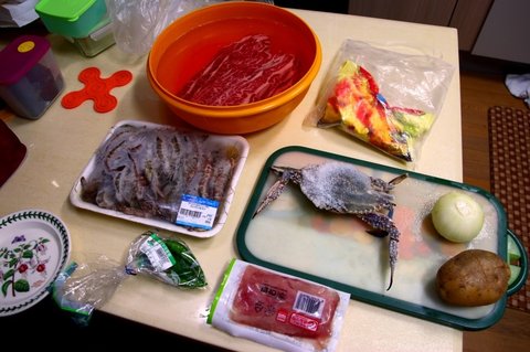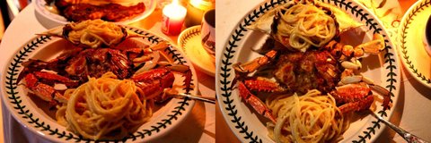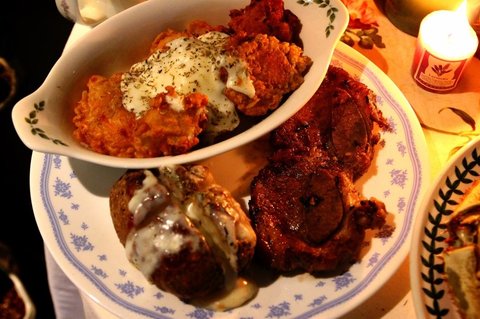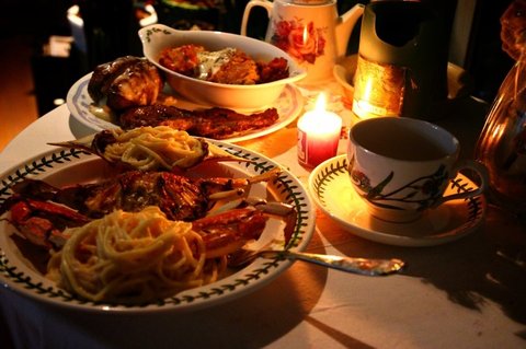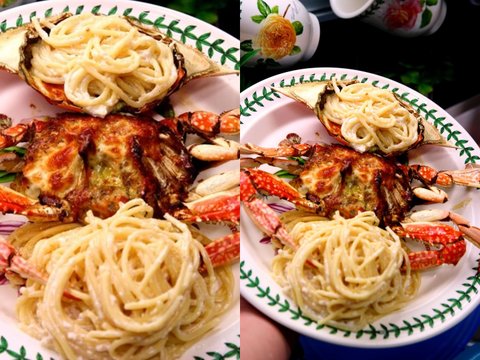 크랩파스타 마늘치킨 버터치즈통감자구이 그리고