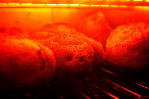 미니오븐 안에서 뜨겁게 달궈지고 있어요