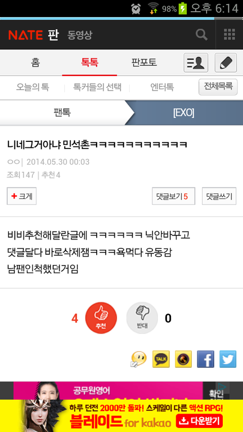 ㄹㅇ 여기 이상한 애 하나 있다는 생각에 오기싫어짐ㅋㅋ