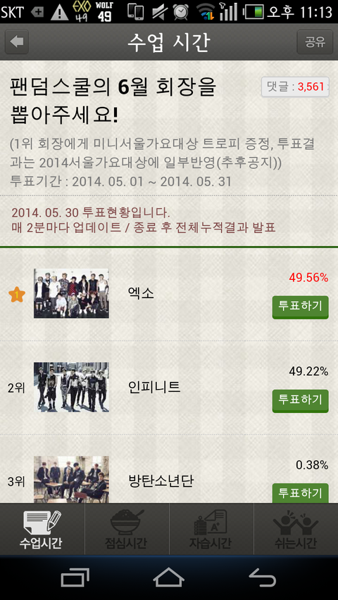우리팬들은 초기때 띵가띵가놀다가 막바지 가서 쪼달려서 다같이투표하는듯 그렇게라도 괜찮으니깐 꼭투표하자 엑소사랑하자!