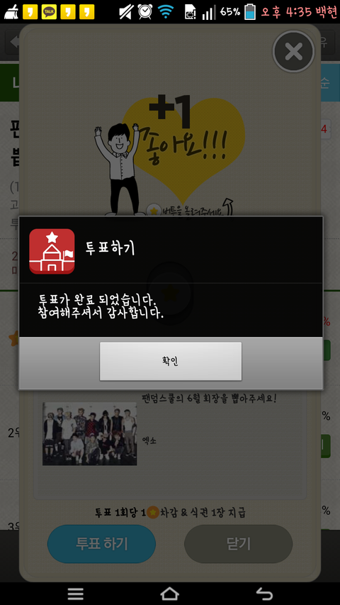 폰고장나서 고치자마자 어플깔고 투표열라했다
