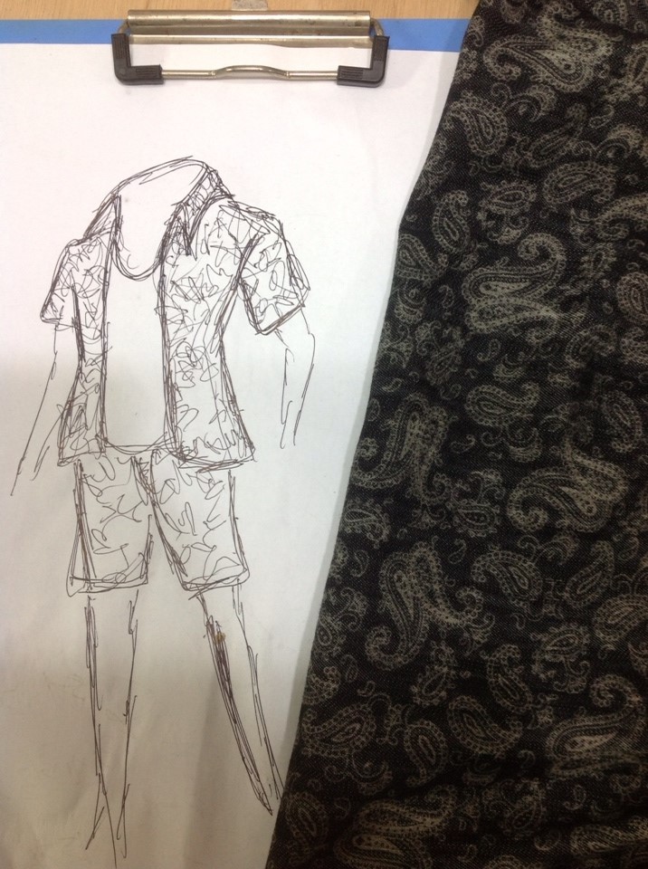 ┗▶우선 대략적인 디자인을 그려 보았다. 남자 슬림핏 셔츠와 슬림핏 반바지의 느낌을 표현하기 위해!