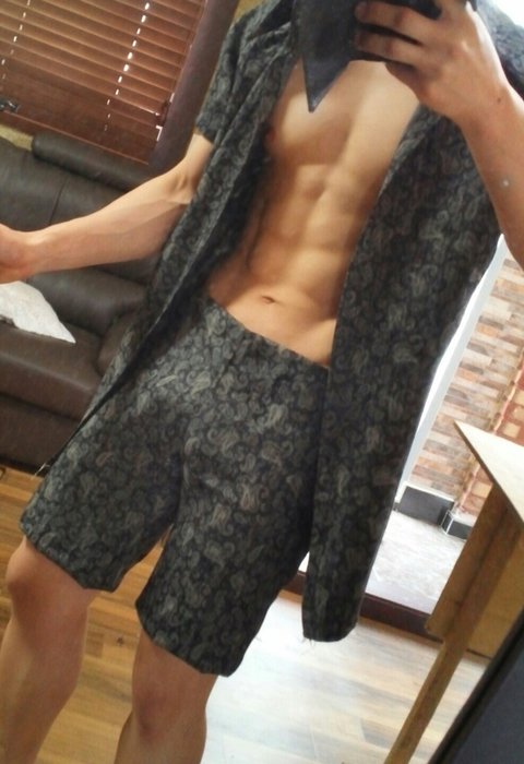 ┗▶남자 슬림핏셔츠와 슬림핏반바지 작업 중간의 대력적인 모습이다ㅋ 뭔가 기모노 같기도.?ㅋㅋ
