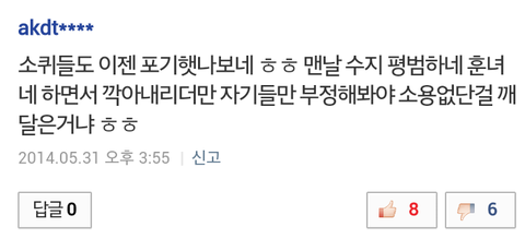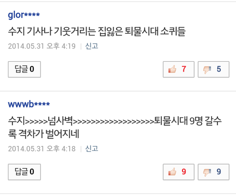 네이버뉴스가면 항상수지기사뜰때마다 소시보고 퇴물시대 망녀시대이러는데 진짜 수지보고 퇴물이라고 하면 좋겟음? 그만 좀 언급좀햇으면 좋겟네요 그리고 또 팬코라고할까봐 말하는데 팬코가아니라 진짜 수지팬들 맞음