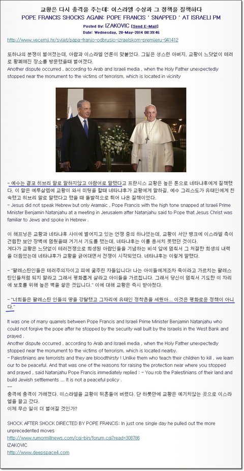 유대인과 이스라엘에 쓴 소리 한 프란체스코 교황