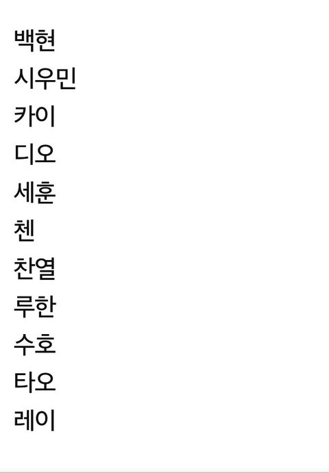 엑소 인기순위