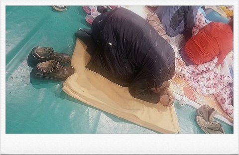숙박 : 마을회관, 찜질방, 텐트, 가정집.