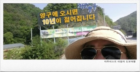 문영 형님이 운영하는 탸투샵 소파에서 잠을 잤는데 몸에 맞지 않아서인지 밤새워 뒤척이다 아침이 다 돼서 간신히 잠을 청할 수가 있었다 몇 시간 눈을 붙인 후 오후가 돼서야 출발을 하였다. 5월 중순에 들어서니 날씨가 꽤 무덥다. 가는 길에 막국수 집에 들어 요기를 한 후 걸음을 이어갔다.그런데 오늘은 문제가 조금 생겼다. 다음 일정은 항상 체크를 해야 하는데 그러하지 못해 양구를 가는 중에 배후령이라는 고갯길이 나온다는 사실을 알지 못했다. 미리 알았다면 출발을 아침부터 서둘렀을 텐데 오늘은 고개를 넘는 도중에 밤을 맞을 것이 분명하다.