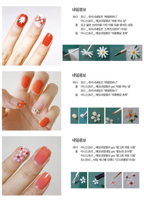 다수의 분들이 취향저격이라 해주셔서 네일정보랑 꽃그리는 법 정리해왔습니다.