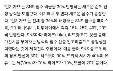 인기가요 sns 반영 비율
