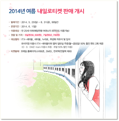 20대 청춘들만 즐길 수 있는 내일로도 티켓 판매를 실시 했는데요