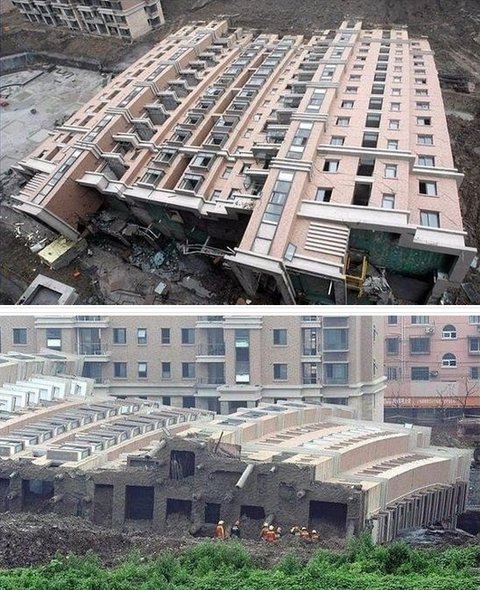 건물이 넘어갔는데 유리는 하나도 안깨짐 ㄷㄷ