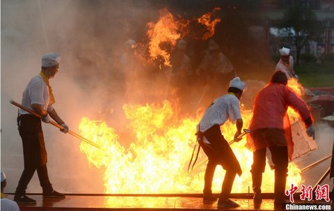 후난성에 무게 11톤의 거대한 후라이팬이 등장했다.
