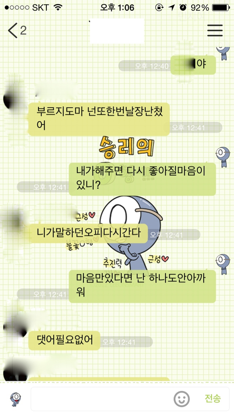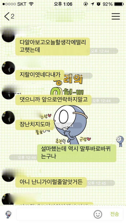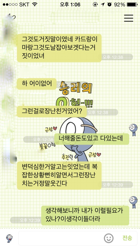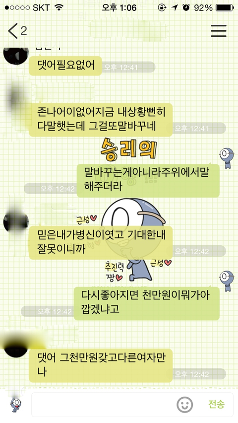 진짜 카톡내용 다올리고 싶은데 사진은10장만올라가네요..젠장..
