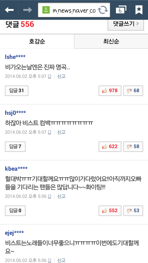 진짜기다려준뷰티들너무예쁘다..많은신인아이돌사이에서이렇게빛을바래다주는게얼마나예뻐보이는줄몰라..비록좋지않은댓글도많지만아직뷰티들이이렇게많고많은사람들이응원하고있다는사실하나만으로진짜감동이다..나스밍돌리러갈래ㅠㅠㅠㅠ쏘비스트ㅠㅠㅠㅠ