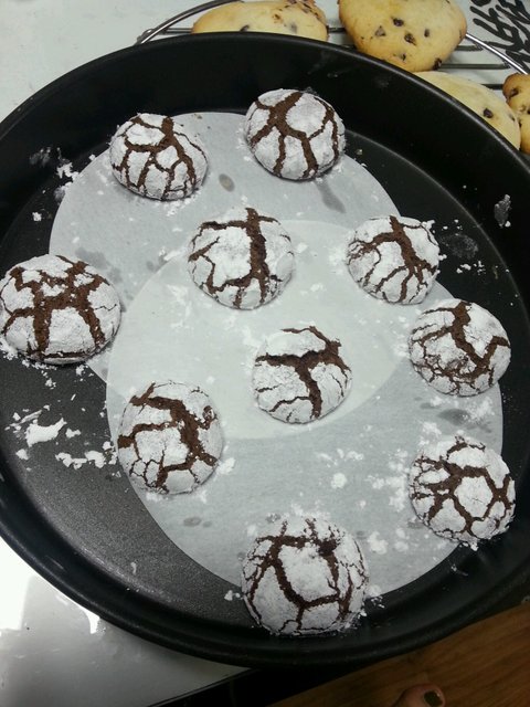 반죽을 동그랗게 뭉쳐서 설탕에 한번, 슈가파우더에 한번 굴려서 오븐에 들어갔다오면 저렇게 크랙이 쩌억!!!*.*