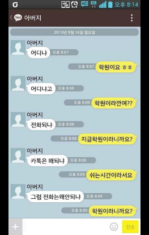 훈훈한 가족 카톡