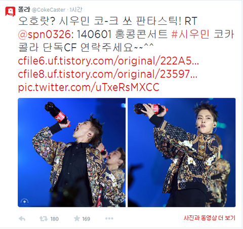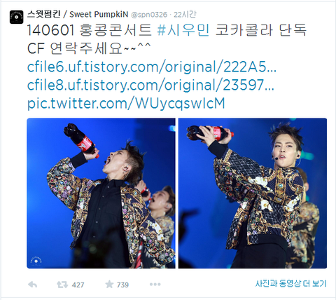 며칠전 스윗펌킨홈마가 시우민 콜랔콜라사진을 올리면서 cf 드립을 침 ㅋㅋ
