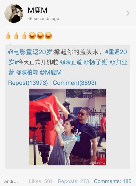 루한이 사진은 없지만 ㅋㅋㅋㅋ 출연하는 영화 '重返20岁' 오늘 크랭크인했다고 업뎃했음 ㅋㅋㅋㅋㅋ