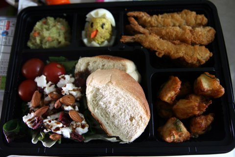 고구마샐러드, 계란병아리, 새우튀김, 닭가슴살튀김, 리코타치즈샐러드