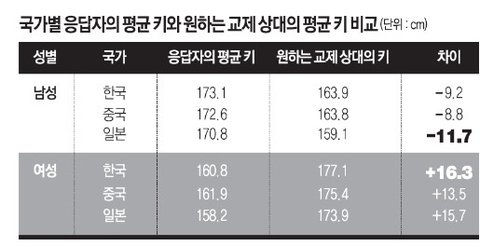 중국남자와 한국여자가 키큰 이성을 선호한다거? 와중에 한국녀가 제일 키따지네 ㅋㅋㅋ