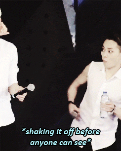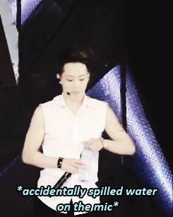 마이크에 물 흘린 시우민 !!표정봐 ㅋㅋㅋ