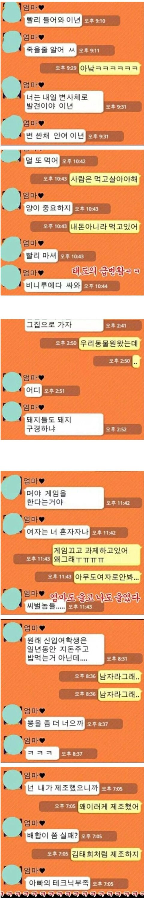 중간에 엄마 왈 : 원래 신입여학생은 일년동안 지돈주고 밥먹는거 아닌데.......