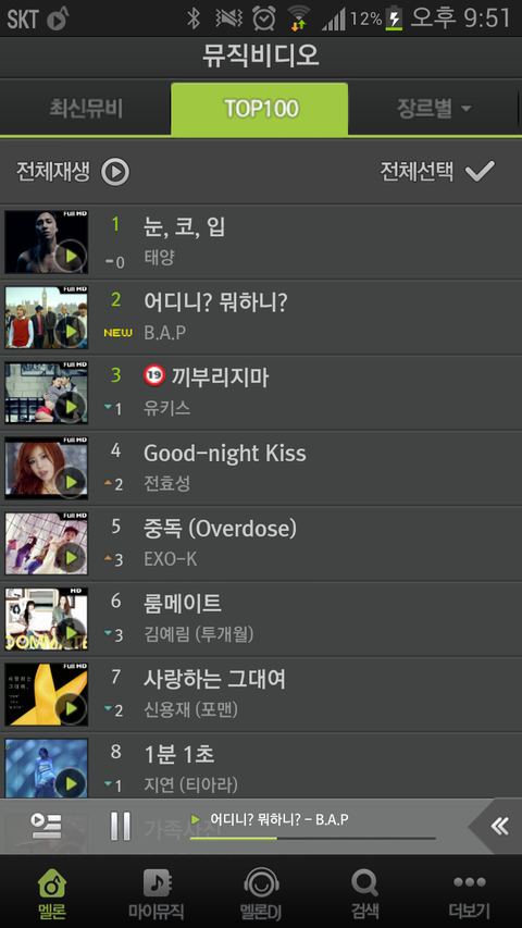 얘들아 우리 멜론 뮤비 순위