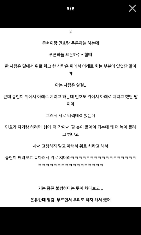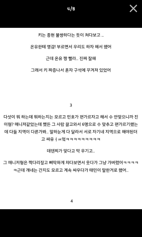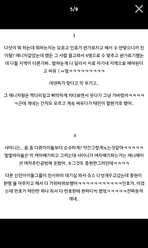 +음...댓글들보니 재미없다는분들도 계시고 이해가 안됀다는 분들도 계시네요...사실 팬톡에 올릴려다 샤월분들이 엔터톡에서 활동을 주로 하시길래 엔터톡에 올린건데 불편하시다면 팬톡으로 옮기겠습니다. 제가읽어도 약간 팬분들이 안읽으시면 왜재밌는지 이해가 안돼는 부분이 있는것같기도하네요...