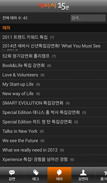 각종 분야별, 테마별로 원하는 강연들을 들을 수 있음!