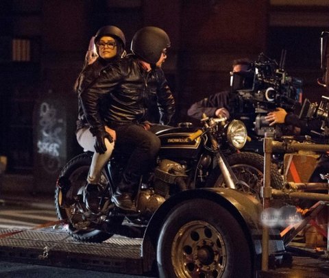 제임스 프랭코와 오토바이위에서 촬영하는 장면이