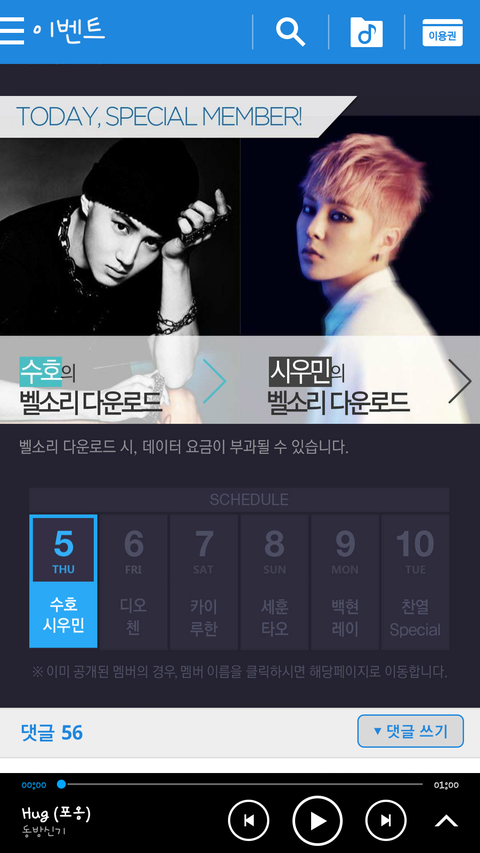 시우민 벨소리나왔어 당장 삼성뮤직 고고
