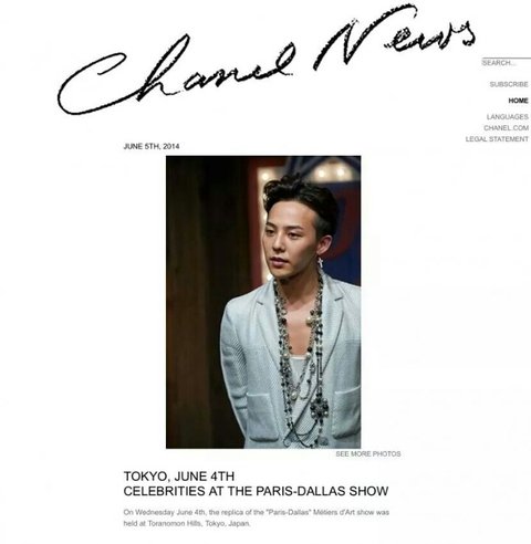 샤넬 메인페이지에 당당히 실린 GD