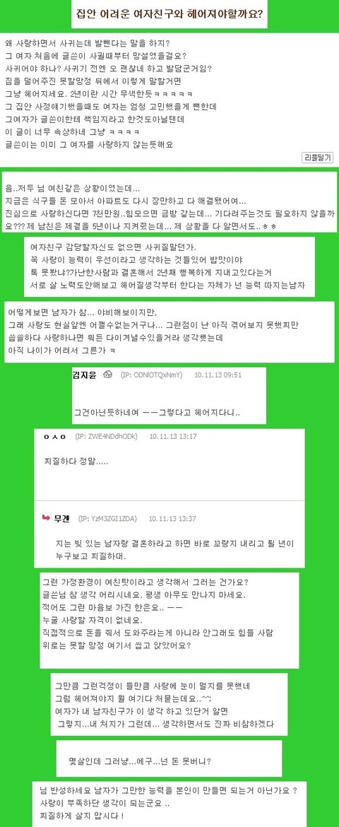 ->여기서 하소연하지 마세요. 찌질해보여요.